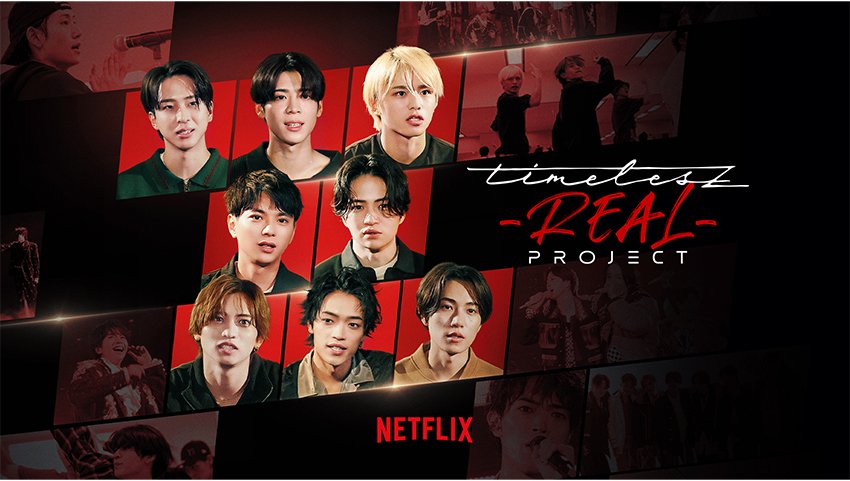 本ビジュアルは、その歩みを重ねながら大舞台へ挑む彼らの等身大の姿が映し出されています。制作は、Netflixのクリエイティブチーム。ドキュメンタリー作品であることを明確に伝えつつ、国際的な視点と洗練されたデザインアプローチによって、ツアーに向けて懸命に努力するtimeleszの情熱と覚悟を、視覚的に表現しています。中央にはメンバーそれぞれのインタビューショットを配置。赤い背景が生み出す統一感によって、一人ひとりの存在感が際立つと同時に、強い意志と結束を象徴。周囲には、ライブパフォーマンスやリハーサルのシーン写真を散りばめ、ステージ上の熱気と舞台裏のリアルな瞬間を一枚に凝縮しました。まさに「パフォーマンスの熱」と「素顔のREAL」が交錯するデザインとなっており、作品の世界観をより強く印象づける仕上がりとなっています。