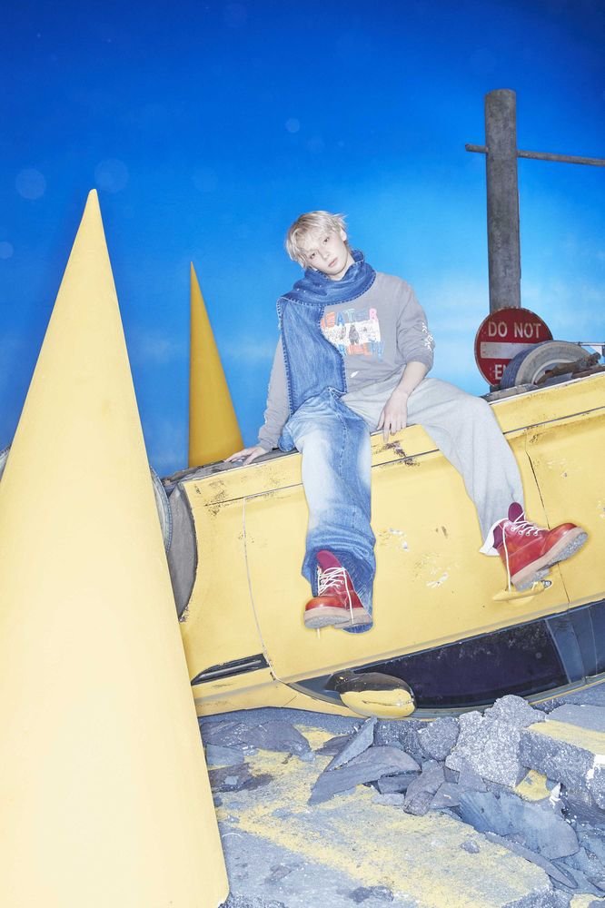 一方メンバーはリラックスした服装で、まるで眠りから覚めたばかりのような爽やかなビジュアルを披露する。袋を持ったSOOBIN、壊れた車に寄りかかるYEONJUN、果物を投げるBEOMGYU、シリアルを食べるTAEHYUN、そしてぼんやりした表情で逆さまになった車の上に座るHUENINGKAIの愛らしい魅力が際立っている。