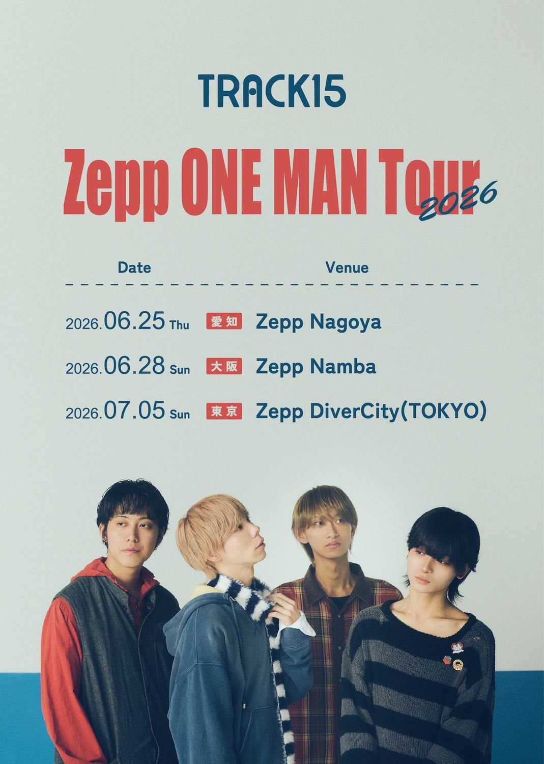 そして、新曲リリースと同時に発表された東名阪Zeppツアー『TRACK15 ZEPP ONE MAN Tour 2026』は、バンド最大規模でのワンマンライブツアーとなり、来年1月23日に開催となる『TRACK15 ONE MAN LIVE -at LINE CUBE SHIBUYA-』もソールドアウトさせた勢いそのままに、急速に広がりを見せるTRACK15の現在地を象徴するものとなる。11月26日よりイープラスにてツアーチケットの最速抽選先行受付が開始となるので、この機会を逃すことなく是非ともチェックしてほしい。