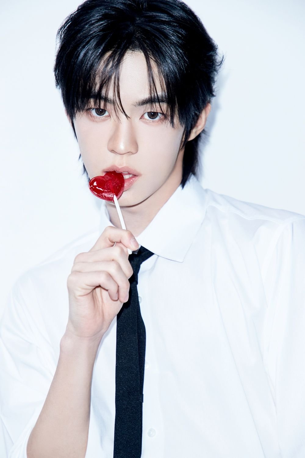 『ROMEO CAT』バージョンでTWSは、白いシャツと黒いネクタイを完璧に着こなし、抑制の効いた成熟美を披露している。赤いハート型のキャンディを齧りながらカメラを見つめる彼らの姿が、胸をときめかせる。メンバーたちは深い眼差しと自然な仕草で、見るだけで恋に落ちそうなロマンチックな雰囲気を完成させた。