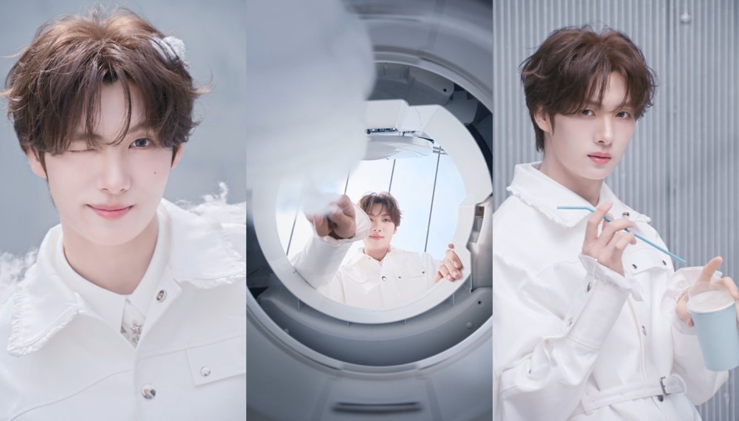 YOUNGJAEは、運勢のヒント(Luck Tips)として提示された「綿あめを食べる」を、独創的な方法で表現する。洗濯機に砂糖を振りかけ、自ら綿あめを作る奇抜な姿が目を引く。機械の中から溢れ出た巨大な綿あめの山の間から現れたYOUNGJAEの甘いビジュアルは、見る人々にときめきを与える。