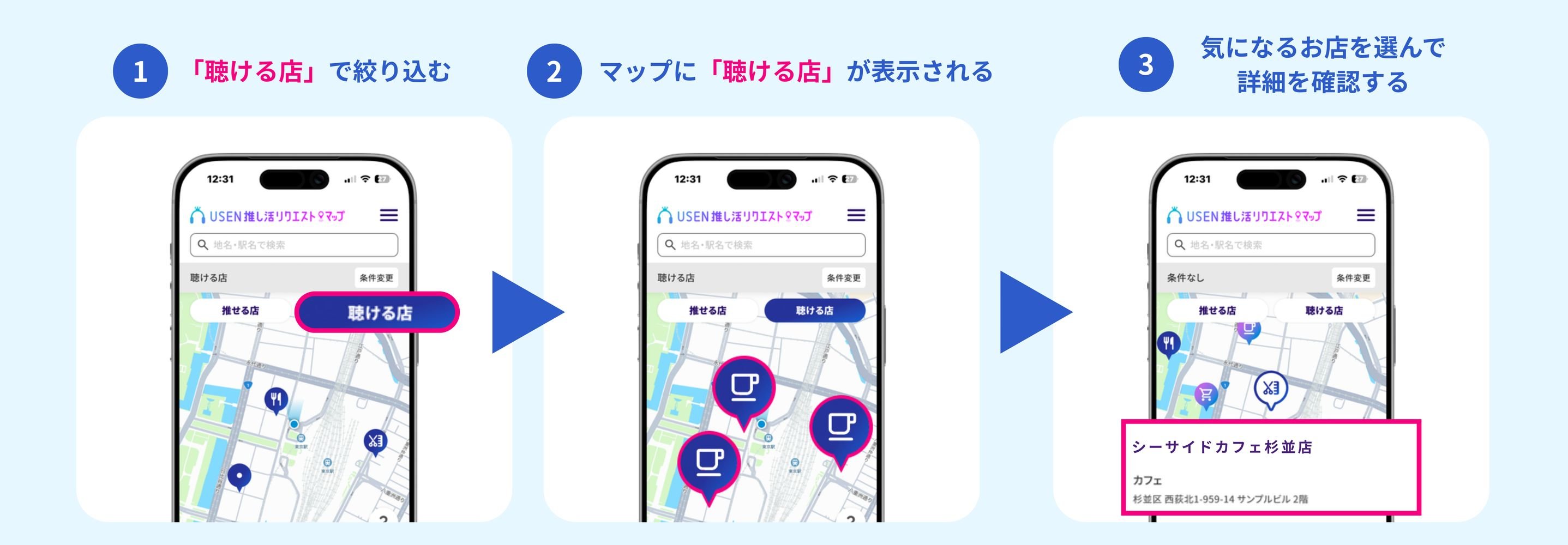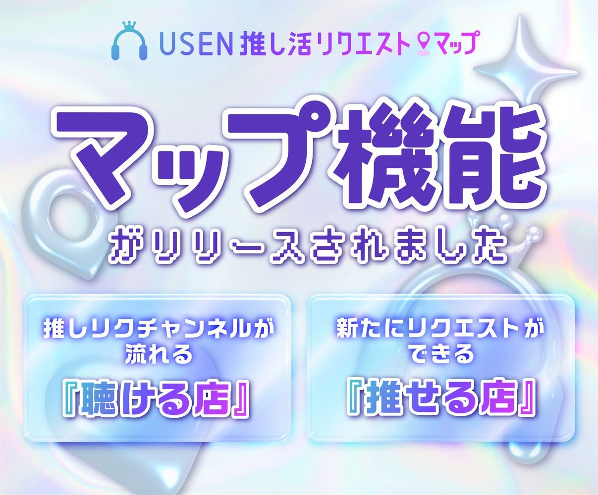 USEN&U-NEXT GROUPの株式会社USEN(本社:東京都品川区、代表取締役社長:貴舩 靖彦、以下、当社)は、本日3月16日(月)より、当社のどなたでも参加できる楽曲リクエスト投票サービス『USEN 推し活リクエスト(以下、推しリク)』で、マップ機能を開始したことをお知らせします。