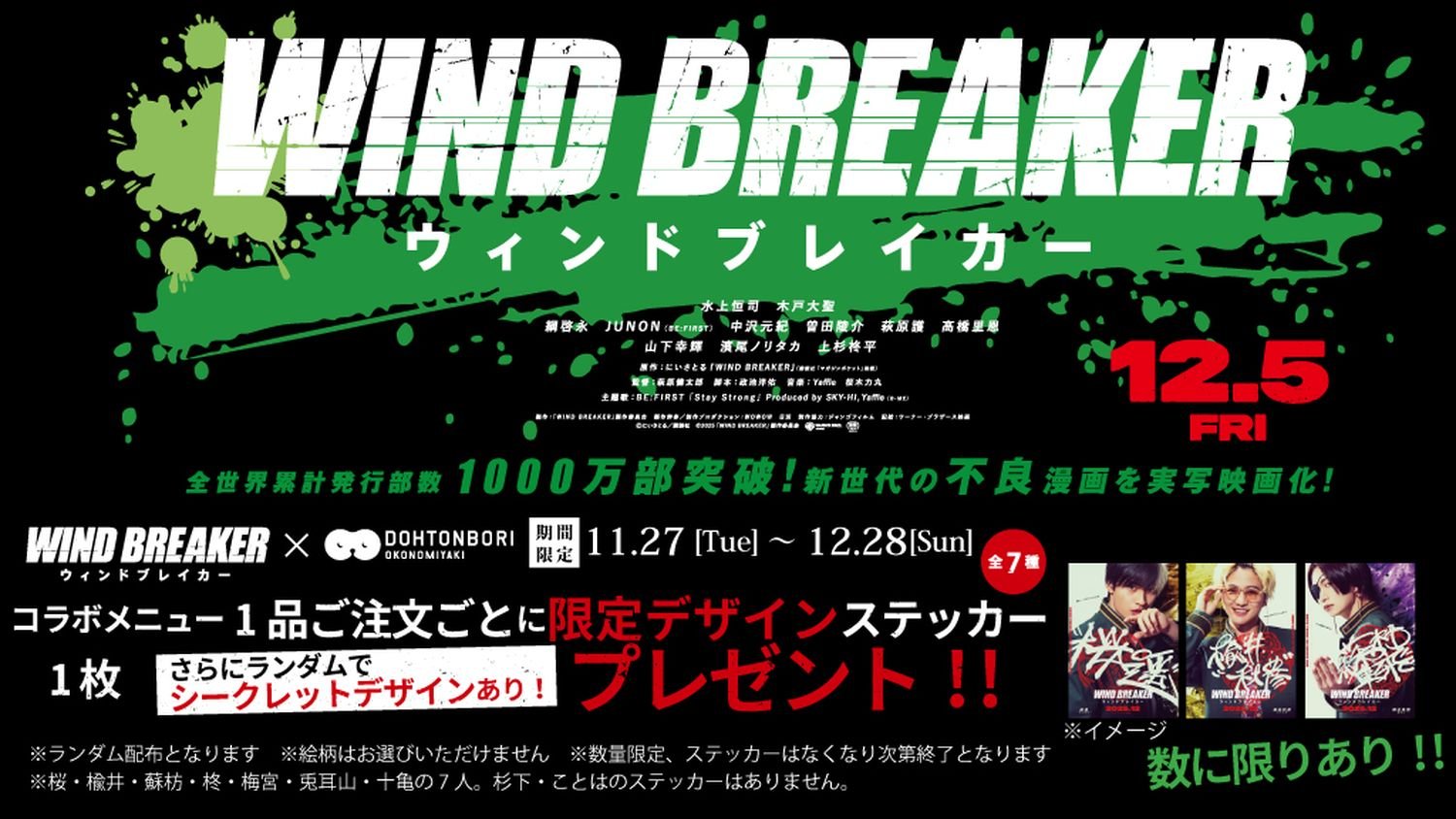 さらに、その熱は映画館へも一気に拡散!全国84劇場では、「WIND BREAKERコラボビジュアル装飾展」の実施が決定!