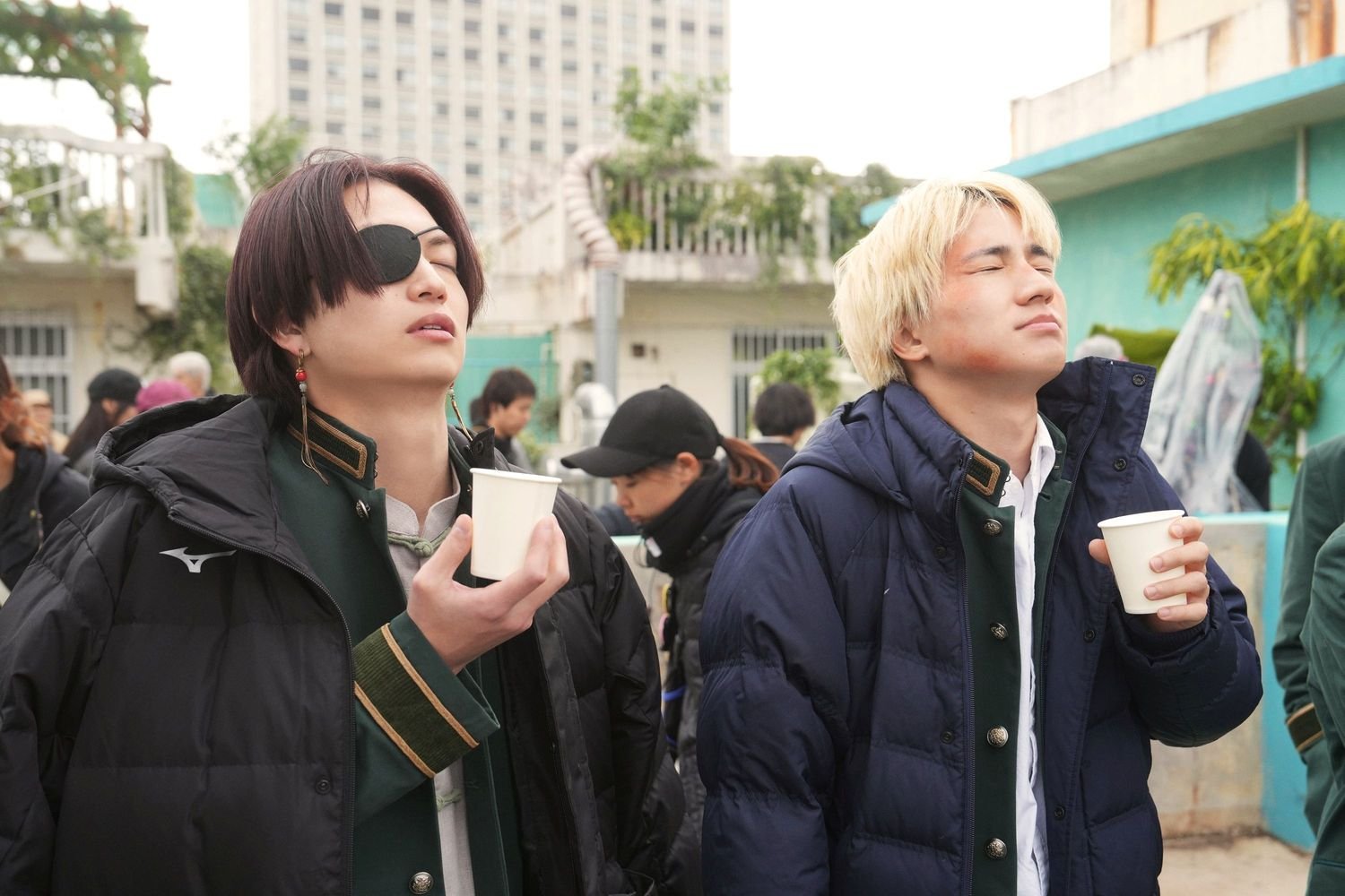 街を守る<防風鈴>と、その前に立ちはだかる最凶集団<獅子頭連>。劇中では、越えてはならない一線をきっかけに激しくぶつかり合う両者だが、撮影現場では一転、穏やかな空気に包まれている。2か月に渡るオール沖縄ロケを共にしてきたキャスト陣の間には、仲間の前でしか見せない自然な笑みがあふれていた。