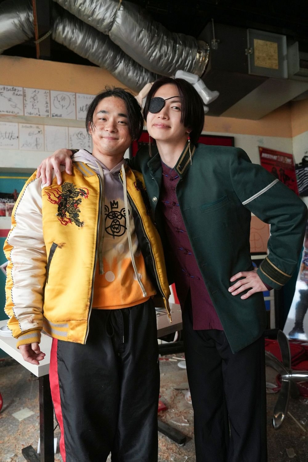 さらに、杉下(JUNON)VS有馬(髙橋)、蘇枋(綱)VS鹿沼(萩原)、柊(中沢)VS佐狐(曽田)、そして“大将戦”を堂々と演じた兎耳山(山下)VS梅宮(上杉)──。壮絶な闘いを繰り広げた者同士が、肩を並べて笑顔を向けるカットも多数。<防風鈴>も<獅子頭連>という立場を越え、作品を通して築かれた信頼関係が、そのまま写真に焼き付けられている。