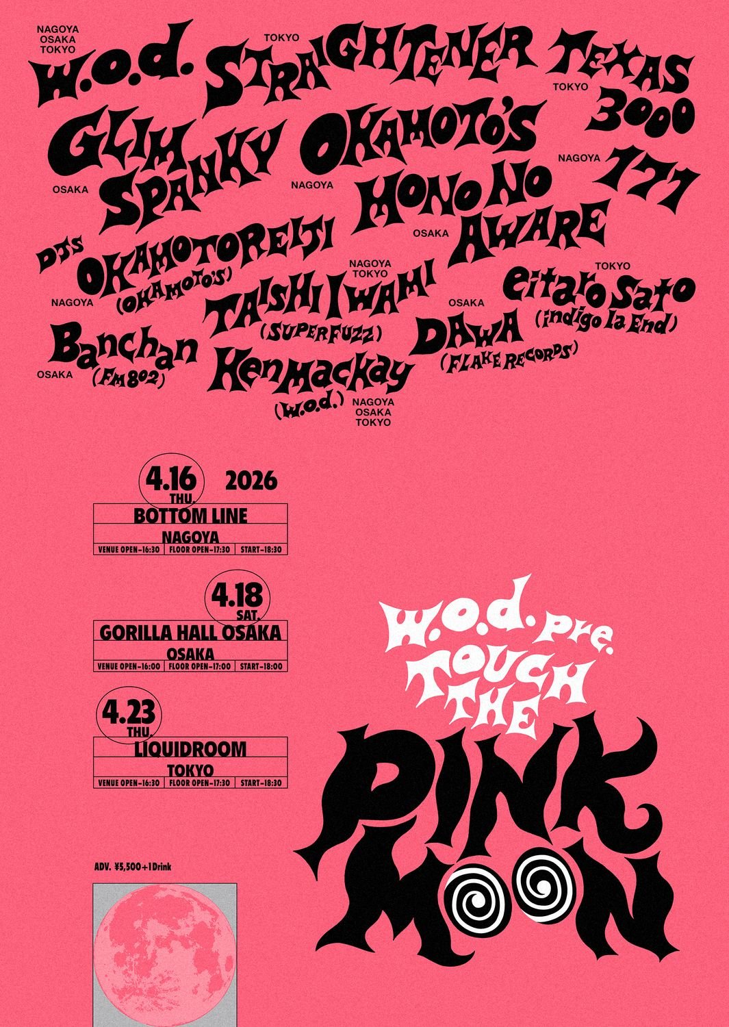 また、先日ゲストアクト&DJが発表となった今年4月に開催する自主企画イベント<w.o.d. presents “TOUCH THE PINK MOON”>は現在チケット先行受付中。
